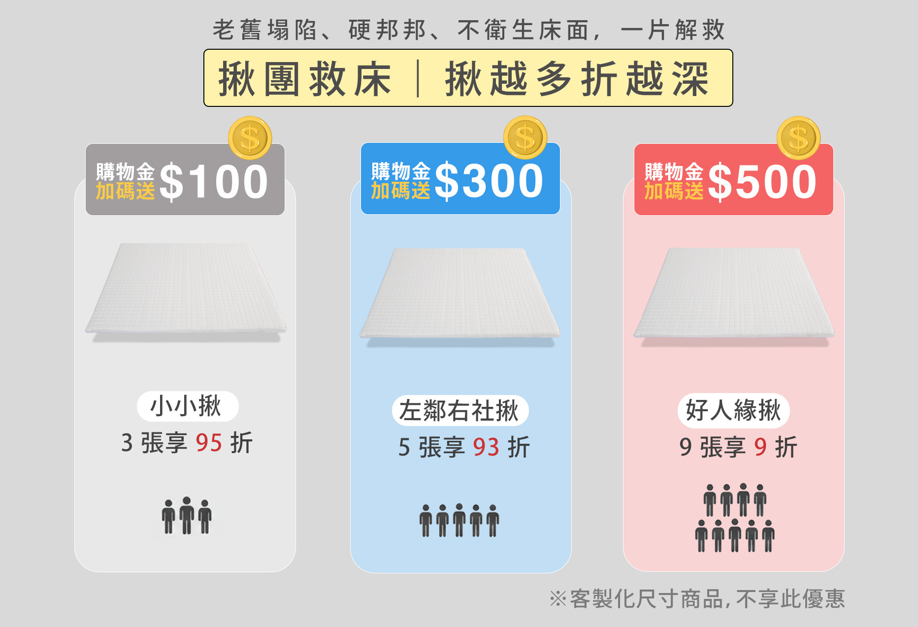 單人3.5尺、雙人5尺、雙人加大6尺、雙人特大7尺、客制尺寸(聯繫客服)