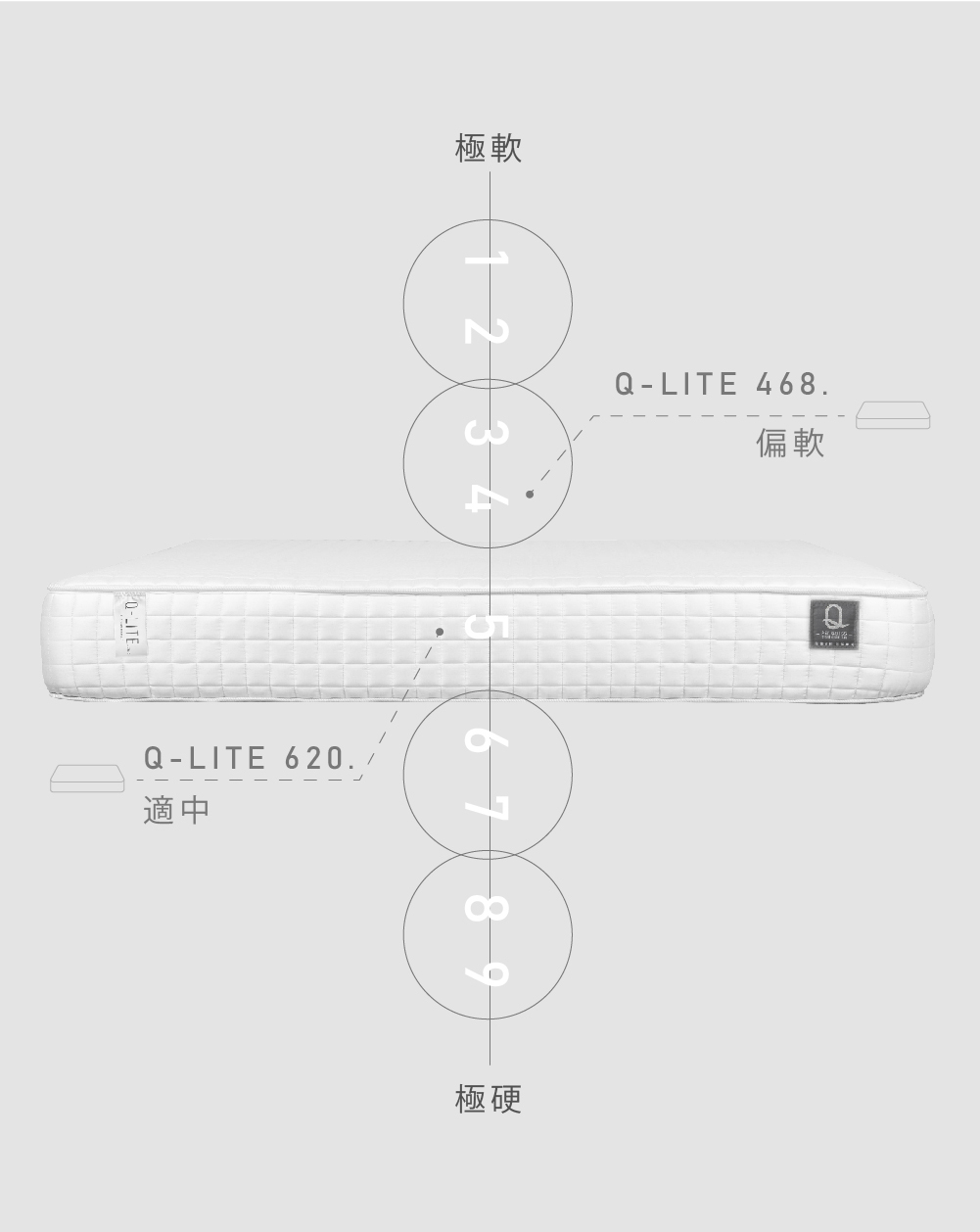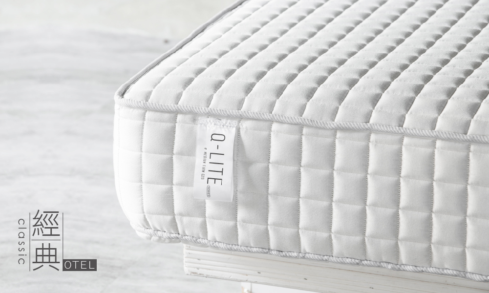 Q-Lite|Q力床,是一張『純手縫製』意義上真正的『手工』床墊,設計模型源自擁有幾十年實戰經驗磨練的『五星飯店』床墊,完美100%移植的飯店DNA配方,純正耐用,經過商用環境的嚴格考驗。