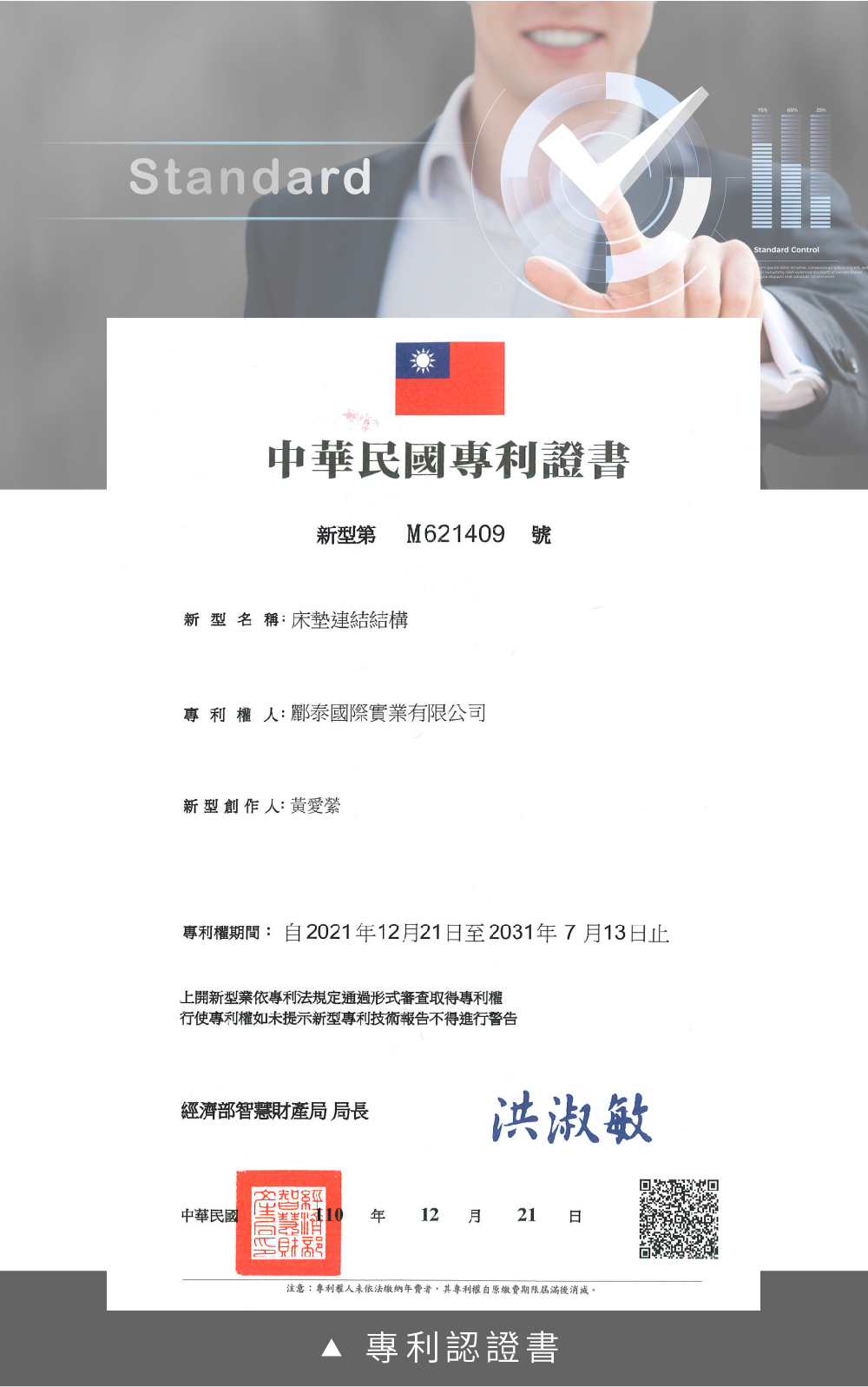 我們的彈簧擁有耐久的使用、均勻的支撐力,是五星飯店選用我們的秘密,並經過SGS檢驗耐用不變形,就算坐在坐在床緣,也穩固有安全感不會下陷滑落,並且提供彈簧10年不變形保固。