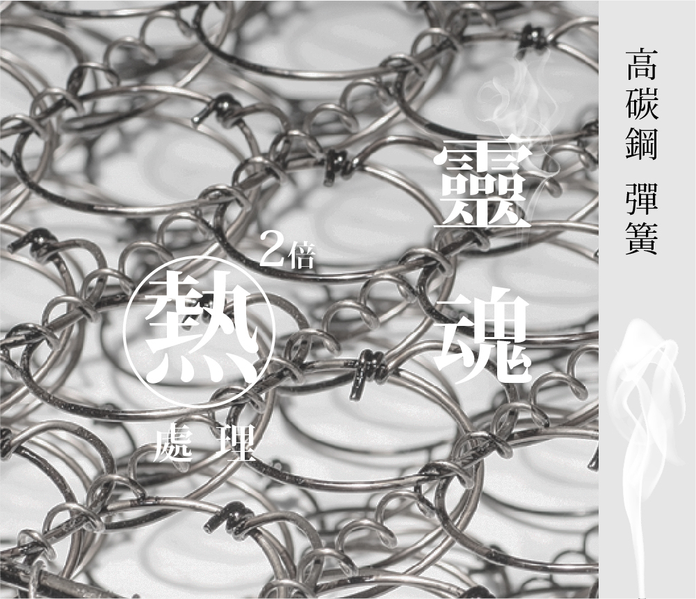 『Q-LITE|Q力床 』使用高碳鋼連結式彈簧技術,彈簧經過『二次高溫』熱處理,結構堅固耐用,能夠承受大量的壓力和持久的使用,多環邊形設計確保彈簧彼此協作的能力,提供更均勻的支撐力。