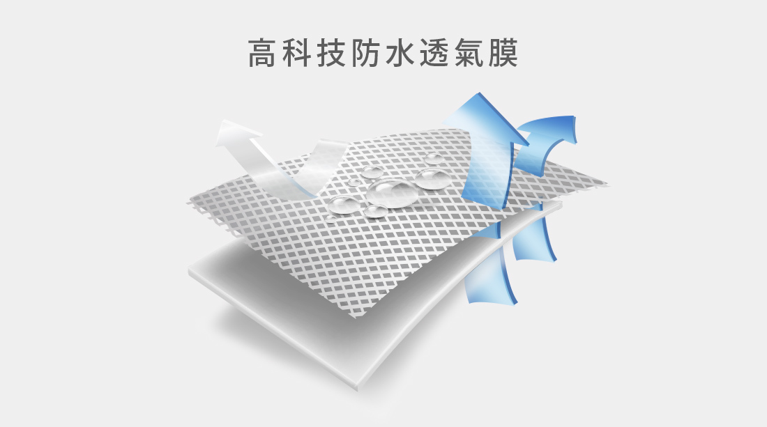 防水層|100%防水,360對流透氧,會呼吸的防水層。