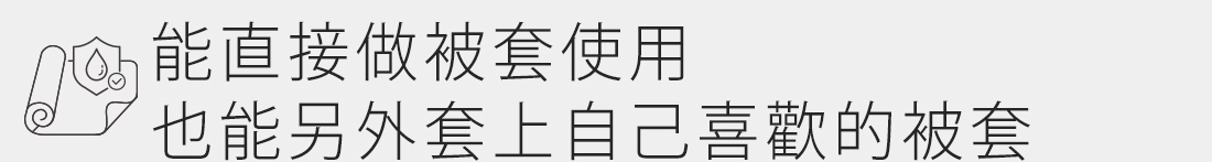 『無存在感防水Q氧被套』被套內外都有綁帶跟掛耳設計,能輕鬆套上被子直接使用,也能額外再套上一層自己喜愛的外觀材質被套,透過內外掛耳綁帶設計,被子與被套間緊密連結,不易跑位滑動。
