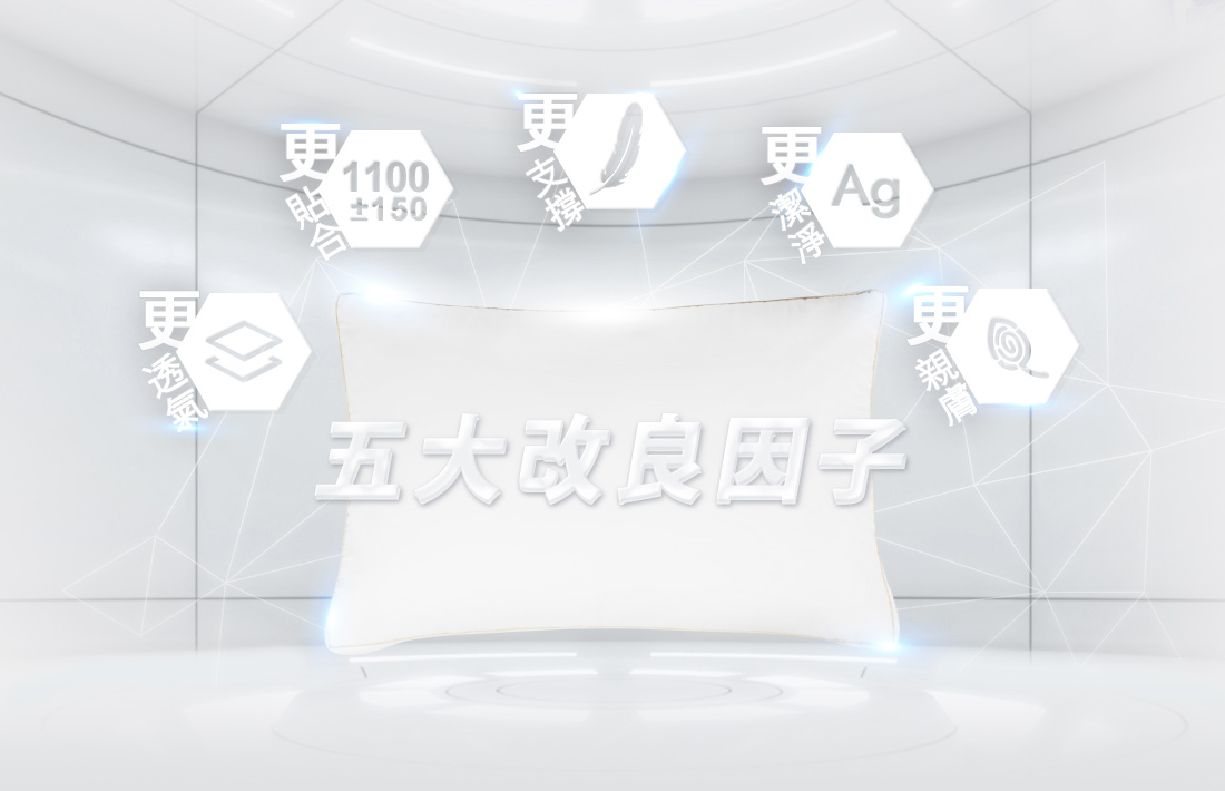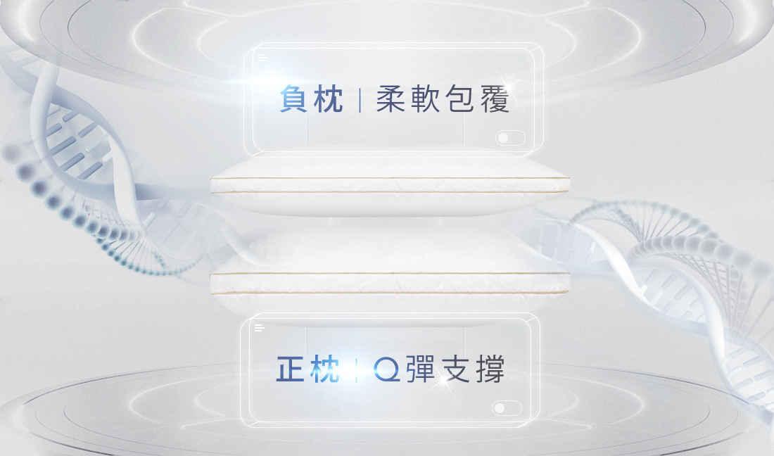 人因正負枕將彈纖維與羽絨做結合,創造出一個新材質「記憶羽纖」