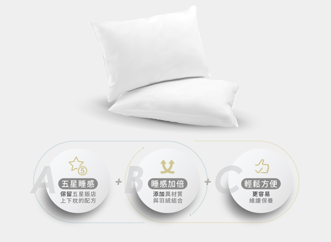 打造一款「 睡感加倍 」+「 更容易維護 」為主要訴求的羽絨上下枕~