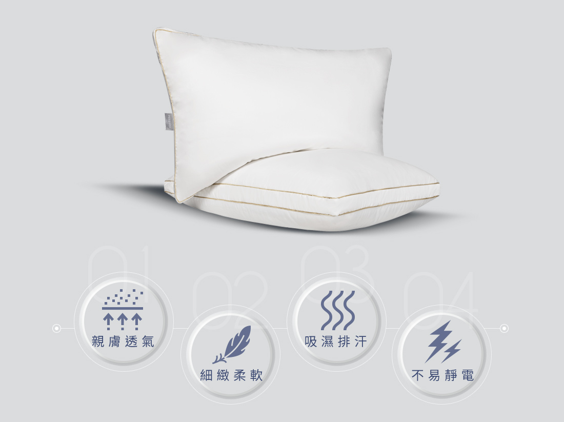 讓睡感與觸感再升級,直逼六星飯店枕;觸感宛如絲綢般細緻柔軟;天絲親膚面料吸濕透氣不悶熱,讓您四季都好睡。