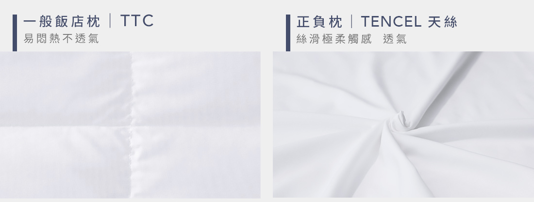 ●「人因正負枕」雙枕表布:皆使用蘭精 天絲™莫代爾纖維,為取材天然纖維製成,擁有極佳親膚柔軟絲滑觸感。