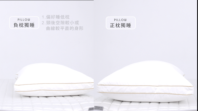 ➖ 負枕獨睡:適合頸後空隙較小、曲線較平直的身形;以及喜好低枕睡感的族群。