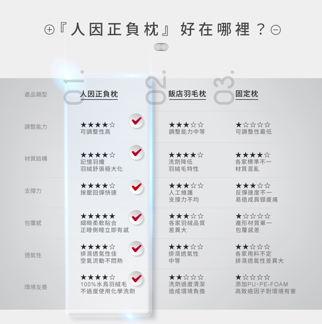 移植純正五星級飯店上下枕DNA血統配方,並經人因實驗室進行優化改良,添加5大睡眠改良因子,2.0進化版五星飯店上下枕,五星の血脈的逆襲-人因正負枕。