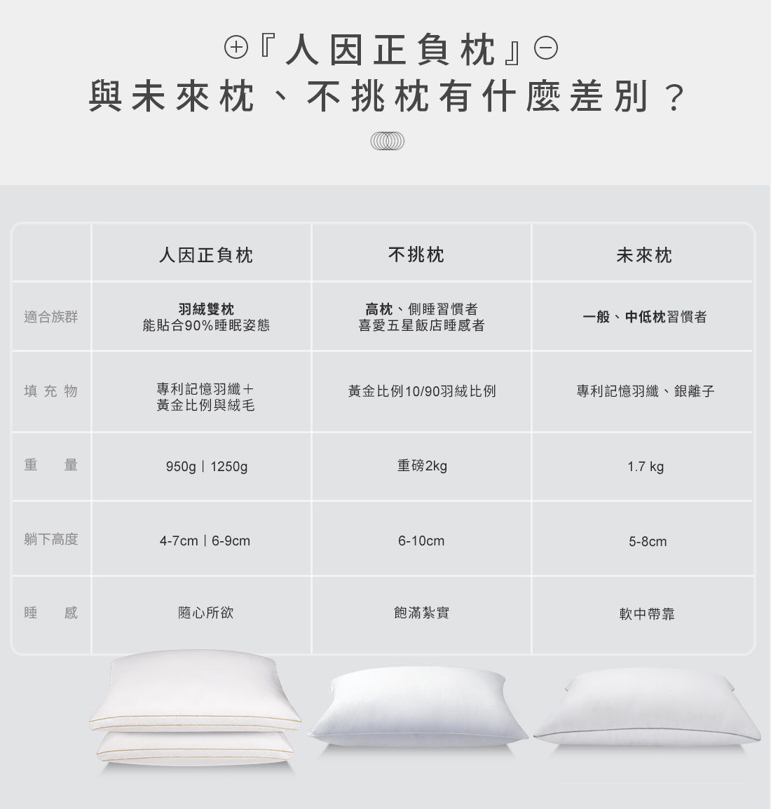 1. 人因正負枕與未來枕、羽絨枕一樣是屬於非定型枕,且完美移植五星飯店上下枕優點。
